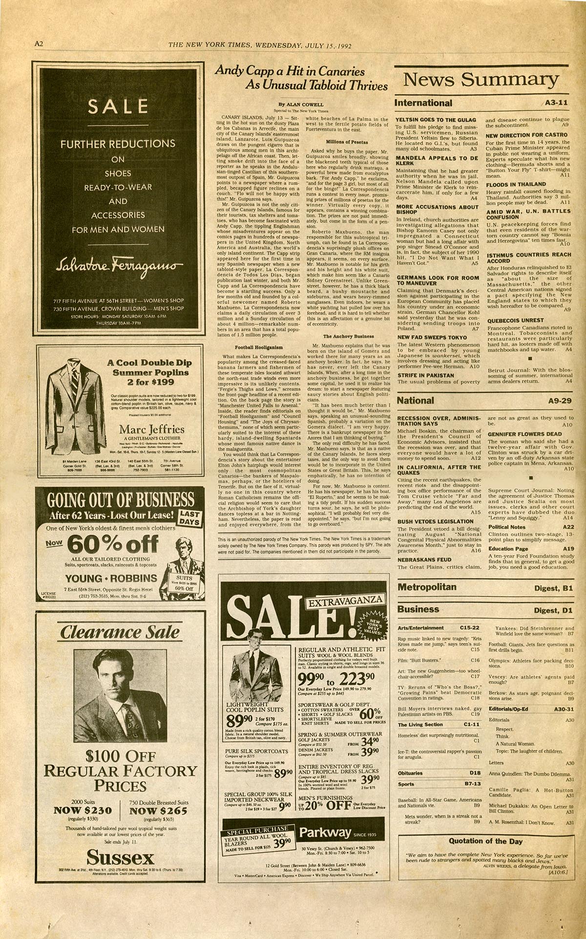 Parody Of: The New York Times. Title: “The New York Times.” Parody By: Spy.