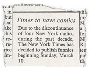 The same day the Times‘ unsigned but obviously inside-sourced account appeared, the Lampoon’s old adversary the Crimson tried to spoil the party: “The New York Times Company announced yesterday afternoon that it will sue the Harvard Lampoon for $175,000 for ‘willful deceit, commercial libel and commercial defamation’ in its March 7 Times parody,” wrote the Crime’s James R. Beniger. “U.S. Justice Department officials are presently studying the parody to determine whether they will file criminal charges for ‘willful fraudulent claim of copyright.’ It is a federal offense to appropriate copyright for material not clearly a parody.”